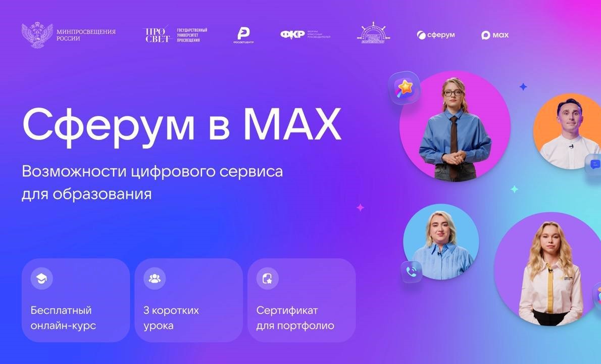 22.09.2025Сферум запустил новый бесплатный онлайн-курс для педагогов «Сферум в МАХ: возможности цифрового сервиса для образования». Обучающий курс создан совместно с Государственным университетом просвещения при поддержке Минпросвещения РФ. Специальные треки курсов разработаны в сотрудничестве с Росдетцентром, Форумом классных руководителей (ФКР) и проектом «Флагманы образования».