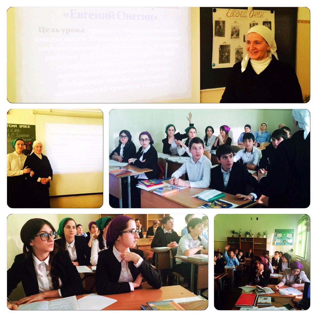 С целью воспитания у учащихся творческих способностей, самостоятельности, формирования познавательного интереса к русскому языку, развития активной жизненной позиции. Учителем Хачукавой К.С. был проведен открытый урок по литературе «Анализ писем по роману А.С. Пушкина ”Евгений Онегин”» в 9 А классе. Урок прошел интересно, учащиеся читали письма Т. Лариной и Е.Онегина. Они рассуждали, высказывали свое мнение, спорили, отстаивали свою точку зрения. Учителем Мусхановой Е.М. был проведен уроке в 8 А классе по теме «Второстепенные члены предложения. Определение». Учащиеся на уроке показали отличные знания и умения. Были применены инновационные формы работы (метод проекта, карточки-задания, тестирования, ИКТ), что разнообразило урок и способствовало повышению интеллектуальной активности учащихся и эффективности обучения.