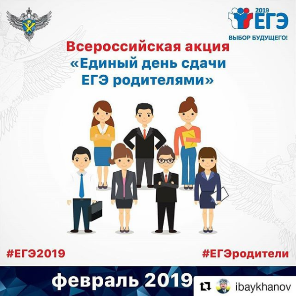 Всероссийская акция «Единый день сдачи ЕГЭ родителями», инициатором которой выступает Федеральная служба по надзору в сфере образования и науки, стартует 26 февраля в 11:00 в Москве. Родители выпускников смогут поменяться местами со своими детьми и пройти всю процедуру ЕГЭ. Акция призвана помочь выпускникам, их родителям и педагогам снять лишнее напряжение, связанное с подготовкой к ЕГЭ. Помимо родителей, возможность сдать экзамен в этот день предоставляется и представителям СМИ.